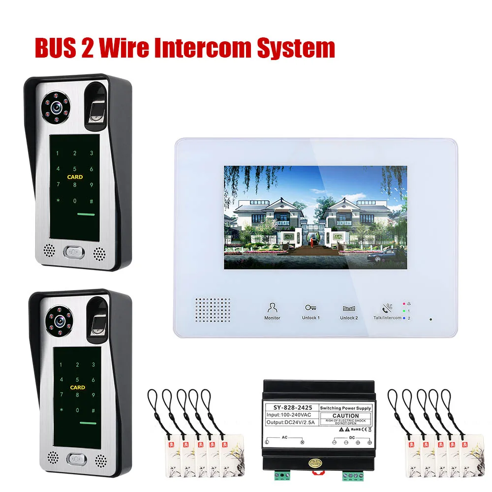 7 Inch 2-doorbell camera 1/2/3-monitor Night Vision BUS 2 Wire Fingerprint Video Door Phone Intercom systems for home
